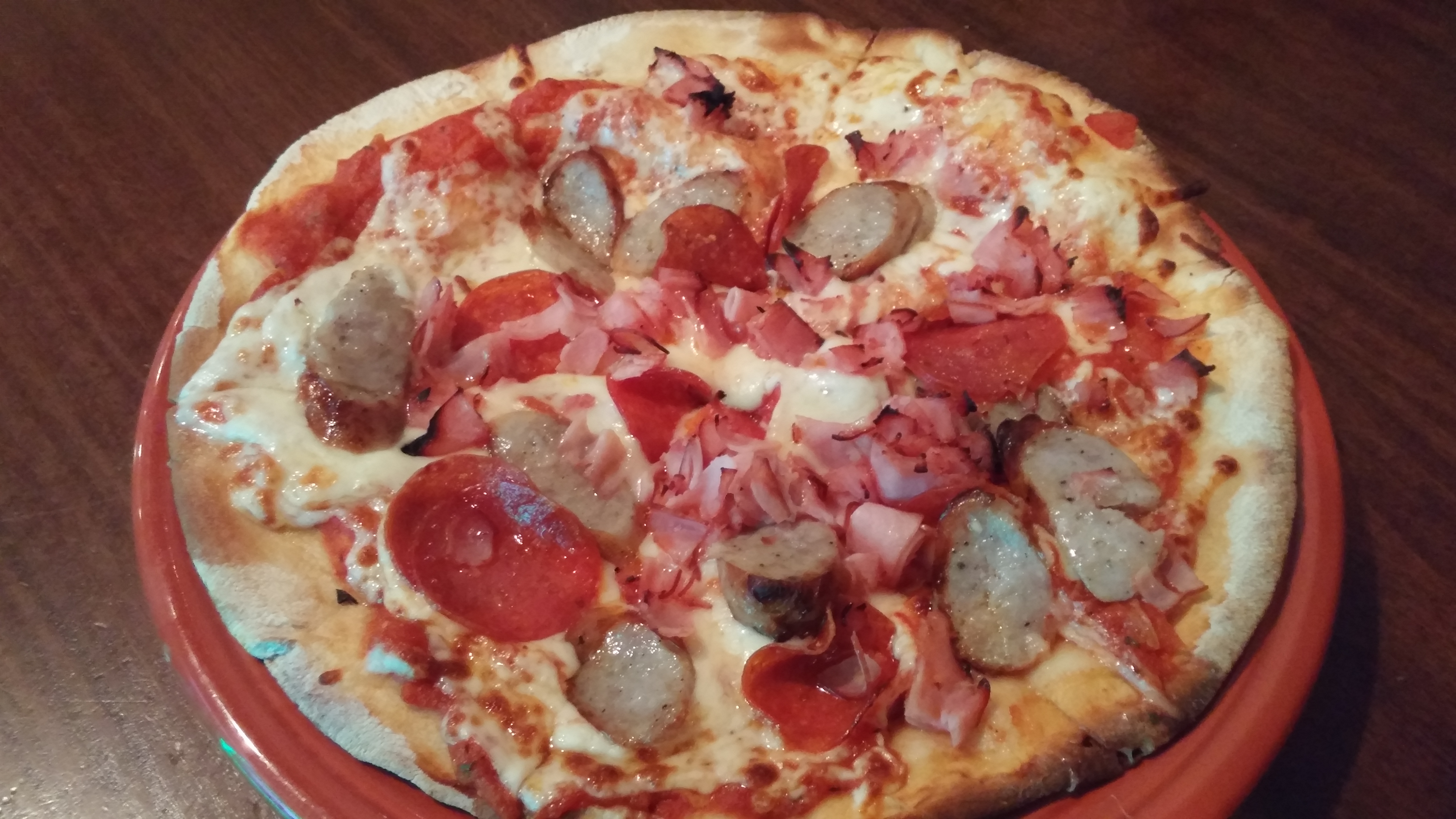 Now I’ve noshed here a multitude of times before and always enjoyed myself. I forgot they served pizza and shame on me for that fact! After making several inquiries to the friendly bartenders and perusing the menu, the unanimous suggestion was to order the 3 Little Pigs! Mama Mia!
